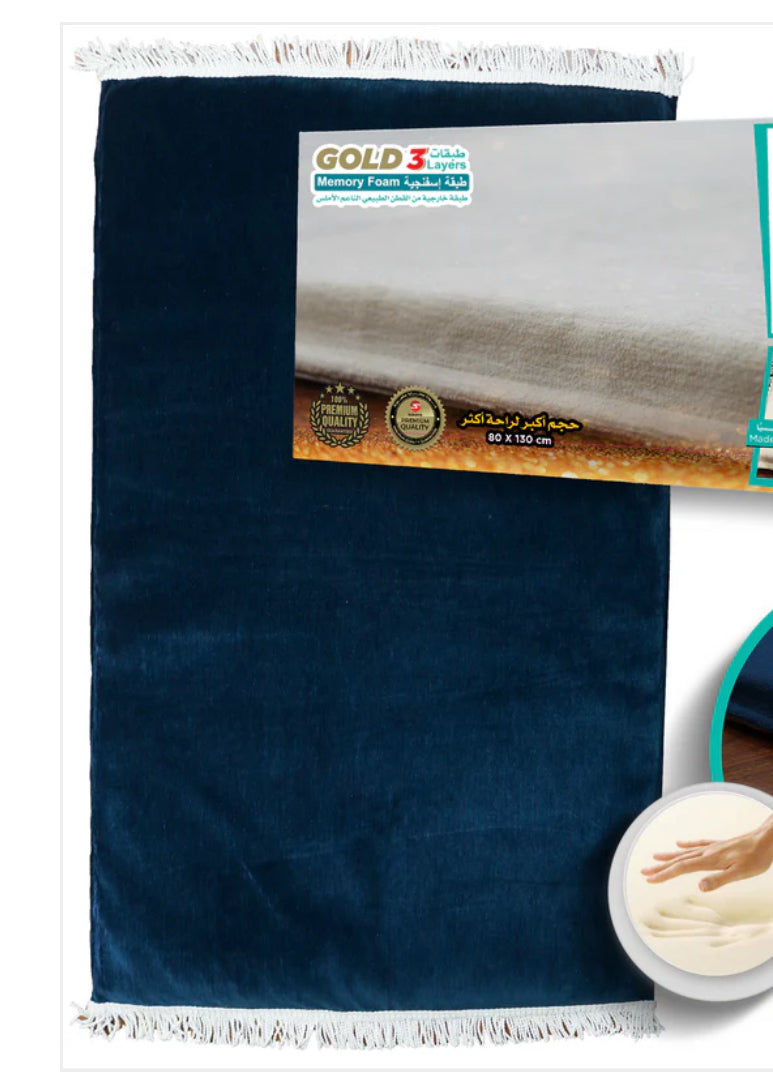 مناسبة لجميع الأعمار وخاصة لكبار السن. هذه السجادة هي الأفضل في تأمين الراحة التامة والمحافظة على سلامة المفاصل والعضلات أثناء الصلاة والجلوس لقراءة القرآن. تتميز حشوة الميموري فوم بقدرتها على التمدد والتقلص حسب الضغط، وتتميز أيضًا بمتانة عالية تدوم طويلاً. كما تعود إلى وضعها الطبيعي بعد تطبيق الضغط عليها من قبل الجسم أثناء الصلاة أو الجلوس.