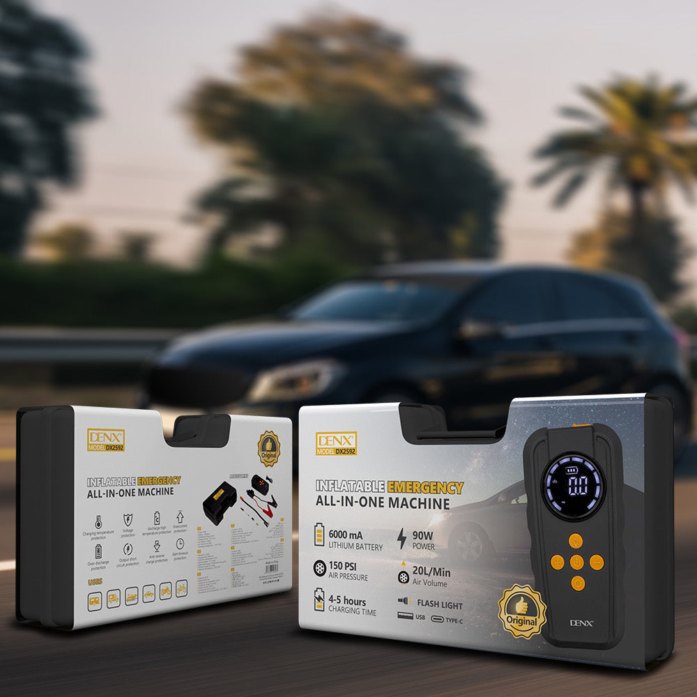 مشغل بطارية السيارة بمنفاخ إطارات مدمج وباور بانك بسعة 6000 ملي أمبير