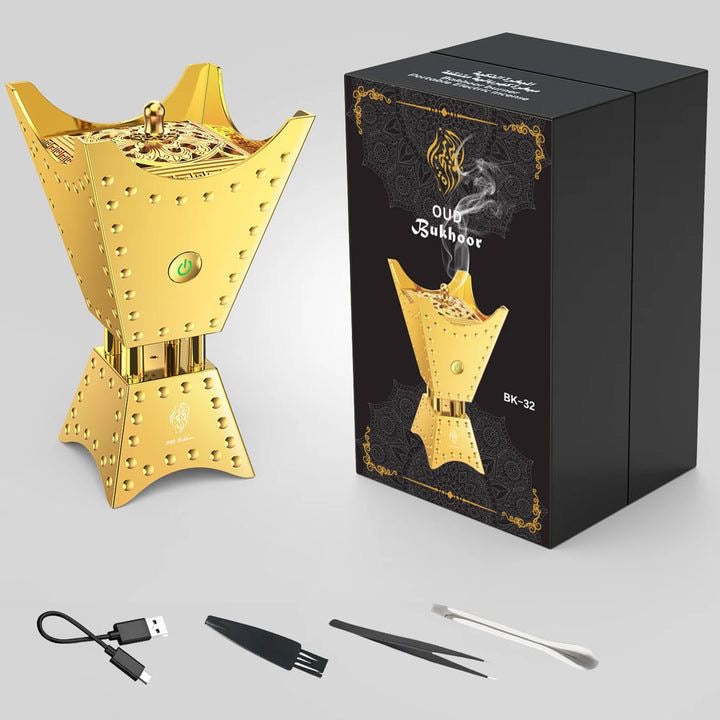 مبخرة إلكترونية عصرية تجمع بين الفخامة والتكنولوجيا، مصممة لتعطير الأماكن دون استخدام اللهب التقليدي.
