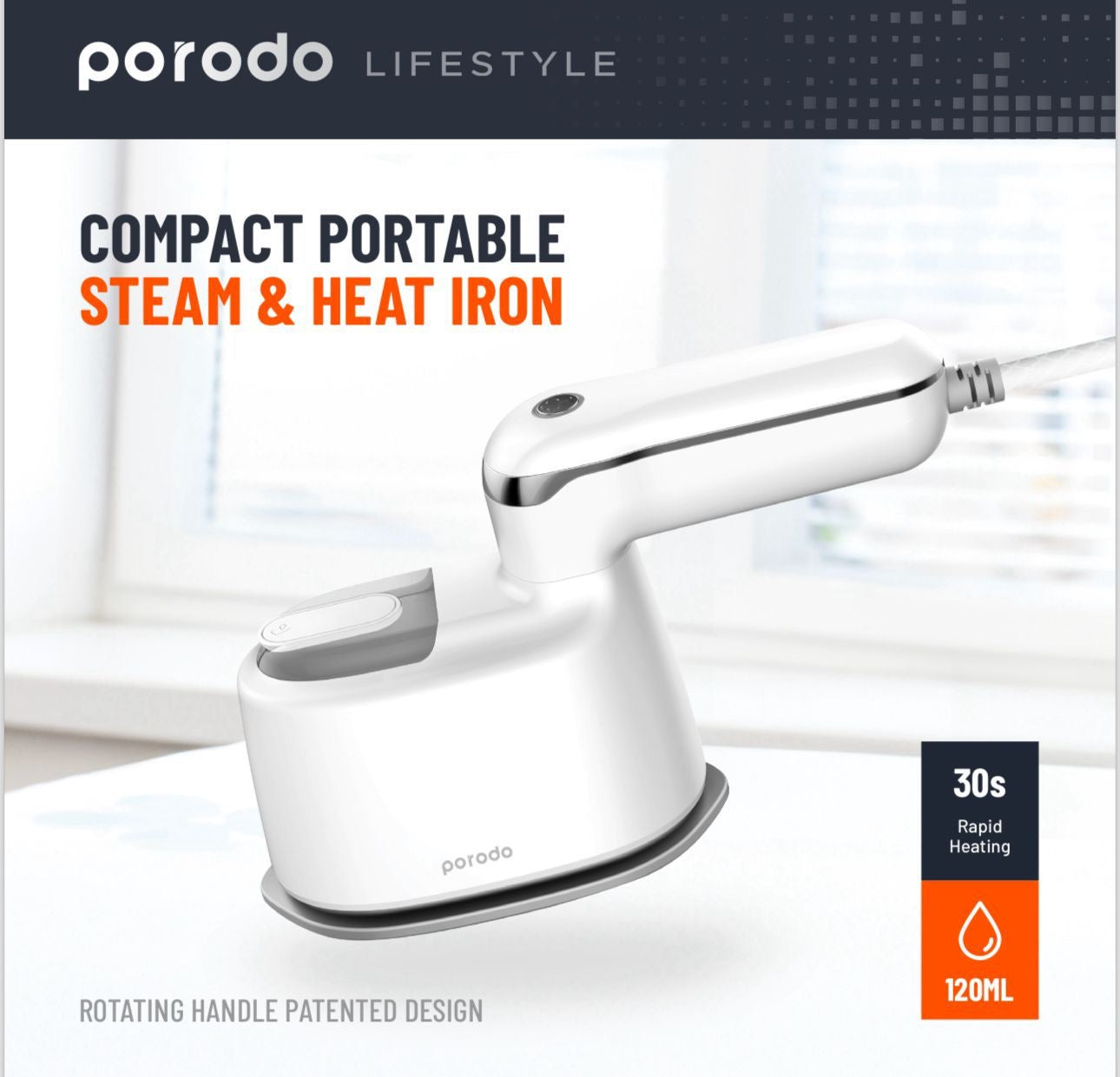 مكواة بخار محمولة ومدمجة من Porodo تتميز بتصميم مقبض دوار - سعة خزان الماء 120 مل. - تردد تقديري 50/60 هرتز. - بخار مستمر لمدة 8 دقائق. - تصميم مقبض دوار. - قوة تقديرية 1100 واط. - طول الكابل 1.7 متر. - التسخين السريع في 30 ثانية. - نعل سيراميكي.