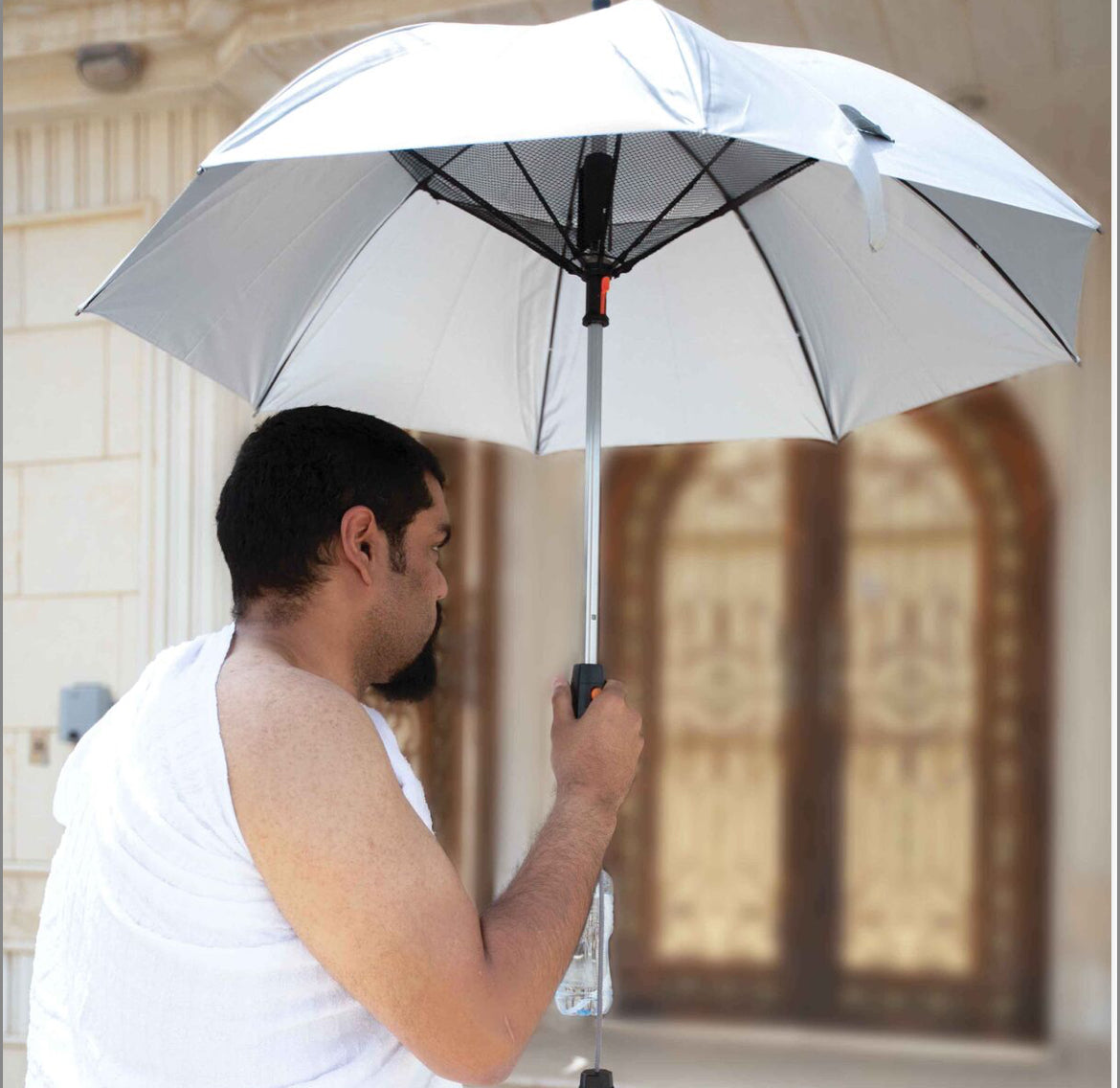 تعامل مع حرارة الصيف الشديدة مثل المحترفين من خلال حمل مظلة الحج مع المروحة وبخاخ. مصممة للتبريد المستمر، تحتوي هذه المظلة على مروحة مدمجة لتحافظ على راحتك تحت أشعة الشمس. ولإضفاء المزيد من الراحة، فإنها تحتوي أيضًا على ميزة بخاخ خاصة التي تقوم برش رذاذ مهدئ من الماء البارد للتغلب على الحرارة. بالإضافة إلى ذلك، فإن غطاء المظلة مصنوع من البوليستر عالي الجودة لتوفير حماية كافية ضد أشعة الشمس القاسية.